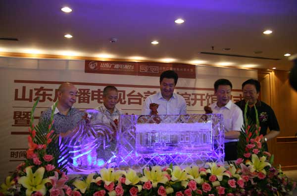 原山东省委书记苏毅然宣布山东广播电视台美术馆开馆,韩国强、范扬、张志民、张业法、徐青峰为山东广播电视台美术馆开馆注酒。
