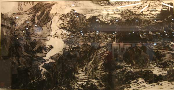 美术馆开馆仪式结束后,“十年之约”张志民、范扬山水画大展如约举行。