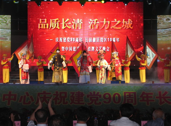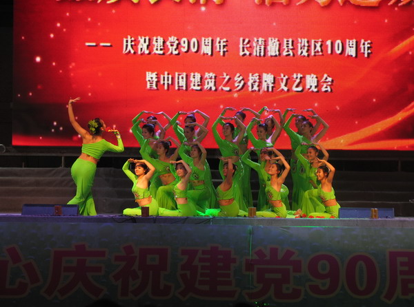 6月23日晚,庆祝建党90周年 长清撤县设区10周年暨中国建筑之乡授牌文艺晚会在园博园演艺广场举行。我校师生40余人应邀参加演出。学校副院长高启光应邀观看了演出。在演出活动中,戏曲学院师生同台为观众献上了国粹精品——京剧联唱《繁花似锦》,舞蹈学院学生表演了大型舞蹈《女人花》。我校师生高超的专业技能水平和昂扬向上的精神风貌获得在场观众阵阵热烈的掌声。演出开始前,设计学院100余人组成的啦啦队与驻长清兄弟院校啦啦队等进行了拉歌比赛活动。