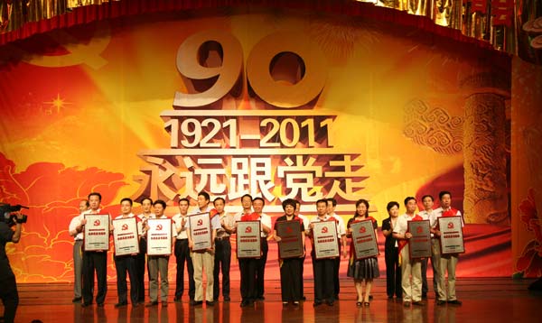 演唱会开始前为山东高等学校先进基层党组织、优秀共产党员和优秀党务工作者举行了颁奖仪式,出席演唱会的领导为他们颁奖并合影留念。