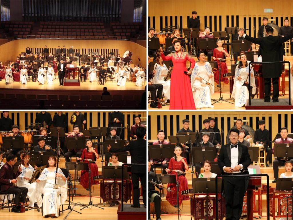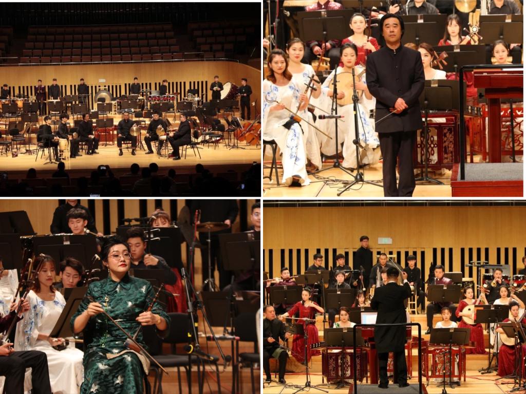 悠悠民乐传千古,袅袅京韵诉乡情。本场音乐会以戏曲风格音乐为主,同时兼顾民族管弦乐作品,既有传统乐曲传承,又有新作剧目创新,以器乐、声乐和戏曲的多元方式和现代舞台表演的审美视角,演绎出美丽山东、繁荣中国的绚丽画卷,展现近年来戏曲、民族管弦乐艺术的精彩魅力。一曲民乐合奏《迎春》拉开了音乐会的序幕,京歌《梨花颂》、吕剧唱段《本县一阵犯疑猜》、唢呐协奏曲《梁山随想》第一乐章、打击乐合奏《黄河入海》、竹笛独奏《三五七》、京乐合奏《马踏金秋》、京胡与乐队《夜深沉》、扬琴独奏《林冲夜奔》、坠琴与乐队《夸山东》、根据新疆同名民歌改编而成的琵琶齐奏《送我一枝玫瑰花》和独具特色的民乐合奏《大宅门写意》《北京一夜》,形式多样,精彩纷呈。强大的演艺阵容、专业精湛的演奏技艺、挥洒自如的舞台表现,让现场观众沉浸于美妙的音乐世界之中,感受到中华优秀传统文化的独特魅力,赢得了阵阵掌声和喝彩。