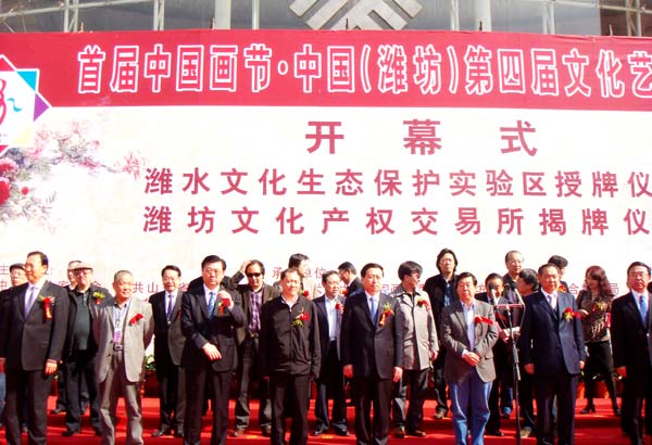 开幕式上,中共潍坊市委副书记、潍坊市市长许立全,中共山东省委常委、宣传部部长孙守刚,中国文联副主席、中国美术家协会主席刘大为做开幕致辞。文化部非物质文化遗产司司长马文辉与潍坊市人民政府副市长王桂英共同进行国家级潍水文化生态保护实验区的授牌仪式。山东省人民政府副省长黄胜与中共潍坊市委书记、市人大常委会主任共同为潍坊文化产权交易所揭牌。