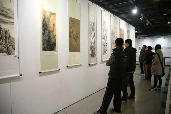 本次展览共展出工笔工作室、山水花鸟、意笔工作室三个工作室100多名学生的作品200余幅。这些作品是从每个工作室课堂教学的不同阶段选出的优秀作品,它们是教师与学生共同辛勤劳动的结果,较为完整地体现了每个工作室的教学理念。