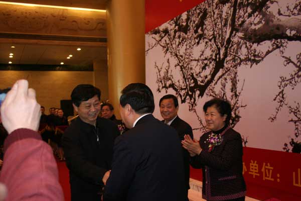 1月16日上午10时,国画艺术大师、原我校名誉院长于希宁先生捐赠作品仪式暨捐赠作品展在山东博物馆隆重开幕。十一届全国人大常委会委员、全国人大财政经济委员会副主任委员韩寓群;省委常委、省委宣传部部长孙守刚;原副省长、省人大常委会副主任邵桂芳;省人大常委会副主任、山东大学党委书记朱正昌;省人大常委会副主任时立军;省人大常委会副主任、省总工会主席刘玉功;省政府副省长黄胜;省政协副主席齐乃贵;省高级人民法院院长周玉华;省委宣传部副部长刘为民;省政府副秘书长司安民;省文化厅厅长亢清泉;省委组织部副部长、省国资委党委副书记于刚;省人大代表资格审查委员会主任付新元;我校党委书记柳文敏、院长张志民,副院长胡德定、王力克、刘晓静以及省内外文化艺术界的广大嘉宾朋友出席仪式。仪式由省文化厅副厅长、省文物局局长主持。