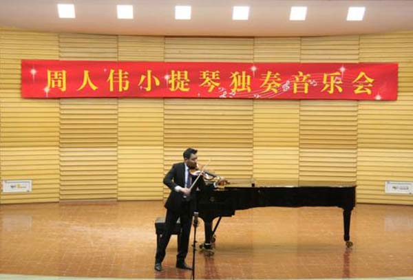 12月16日晚,由山东艺术学院主办、音乐学院承办的加拿大华裔小提琴家周人伟小提琴独奏音乐会在校文东校区综合楼一楼音乐厅举行。音乐学院党政负责人及相关专业师生到场聆听音乐会。