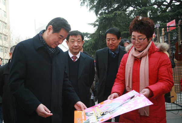 12月19日上午,省委常委、副省长王军民同志来到我校文东校区出席在这里举行的鄌郚电声乐器校园展示活动,并为“山东艺术学院音乐学院实践教学基地”揭牌。山东省人民政府办公厅副主任李世瑛、团省委副书记张辉、省中小企业办公室主任刘新风、省财政厅副厅长李国健、昌乐县委书记王树华,我校党委书记柳文敏、院长张志民陪同出席活动。