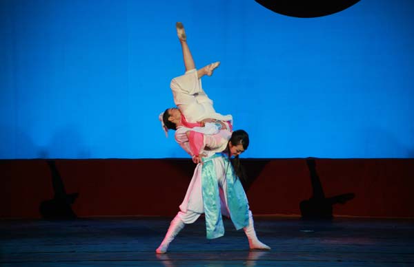 演出结束时,校领导柳文敏、胡德定、王力克、刘晓静走上台,与参演师生一一握手表示感谢,向获奖中青年教师表示祝贺。