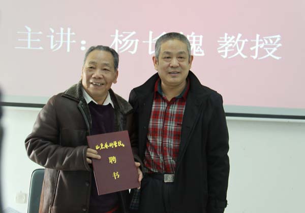 讲座开始之前举行了杨长槐主席受聘为我校研究员仪式,张志民院长为其颁发了聘书并合影留念。