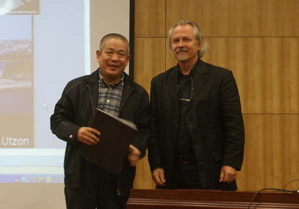 受聘仪式结束后,乌勒教授为在场师生作了题为《陶瓷和玻璃在公共建筑中的应用》的报告。