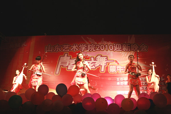 新民乐合奏《自由》拉开了晚会序幕,悠扬动听的旋律传递出山艺学子的清新高雅的艺术气质。朗诵《让梦想远航》反映了我校丰富多彩的校园文化生活和青年学生朝气蓬勃、奋发向上的精神风貌。《无及》、《黑珍珠》、《云裙水袖》让大家领略到了舞蹈艺术的精妙和无穷的肢体魅力。歌曲《我爱你》、《背叛》、《新贵妃醉酒》、《但愿不再是梦里》则在或舒缓或激越的旋律中让观众得到了丰富的听觉陶冶。校园原创小品《大学,我来了》以新颖独特的方式反映了山艺学子对大学生活的向往与解读,充分体现了我校学生的创新与创造能力。魔术《一张变两张》和晚会的互动环节则让全场观众耳目一新,捧腹大笑。师生同台成为迎新晚会的一大亮点,青年教师董莉演唱的歌曲《祖国你好》,在国庆即将到来的时刻表达了山艺师生对祖国母亲的祝愿,将迎新晚会推向了高潮。