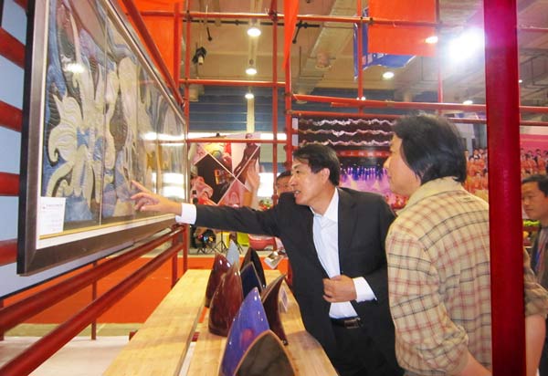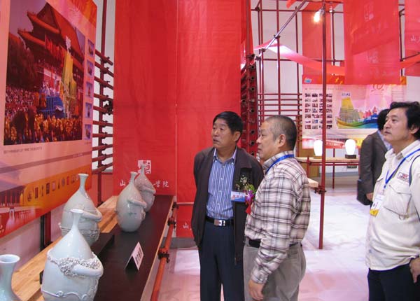 9月27日上午9时30分,第三届山东文化产业博览交易会盛大开幕,山东艺术学院展区精彩亮相,成为文博会的亮点。柳文敏书记、张志民院长来到我校展区,对展览工作进行具体指导,对展区设计和实施部署给予了高度赞扬。