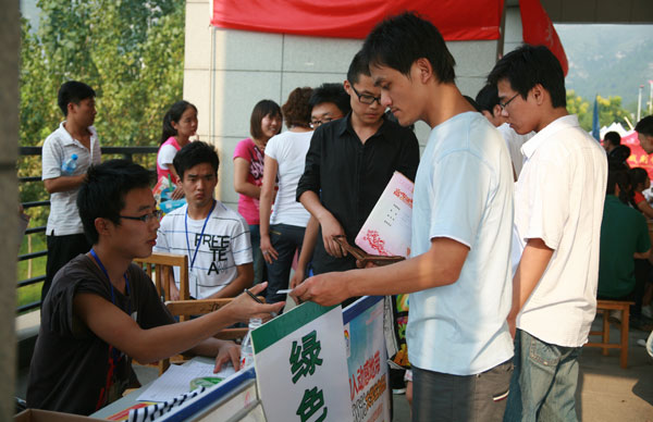 9月11日下午,我校迎新工作的各项准备工作已经就绪。学院大门口 “热烈欢迎2010级新同学”的巨型拱门,写有 “山东艺术学院2010级新生,你们一路辛苦了”、“今天的山艺学子,明日的社会栋梁”等话语的鲜艳标语,内容明晰醒目的“新生报到须知”、“新生报到流程”、“学院简介”等宣传板、宣传栏共同营造出了喜庆热烈的迎新氛围。12日清晨,我校的迎新工作人员一大早便来到了两校区的迎新场所,做好了设备调试、物资摆放等最后的准备工作,于上午8点30分正式开始为2010级新生办理报到手续。