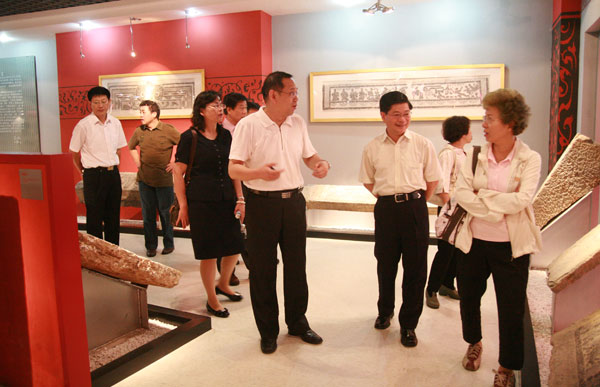 会见之后,代表团一行参观了长清校区、校史馆、汉化石馆和戏剧学院。台湾客人对我校的建设和发展成就给予了高度评价。