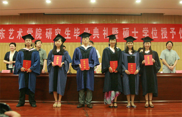 6月28日上午9时,在国歌的庄严旋律中,我校2010届硕士研究生毕业典礼暨硕士学位授予仪式在长清校区图书馆报告厅隆重举行。校党委书记柳文敏,院长张志民,党委副书记、纪委书记刘致兴,副院长郭跃进、刘大力、王力克、刘晓静在主席台就座。典礼由党委副书记、纪委书记刘致兴主持,各二级学院、各部门相关负责人,研究生导师、研究生任课教师、全体研究生及毕业研究生的亲友们参加了典礼。