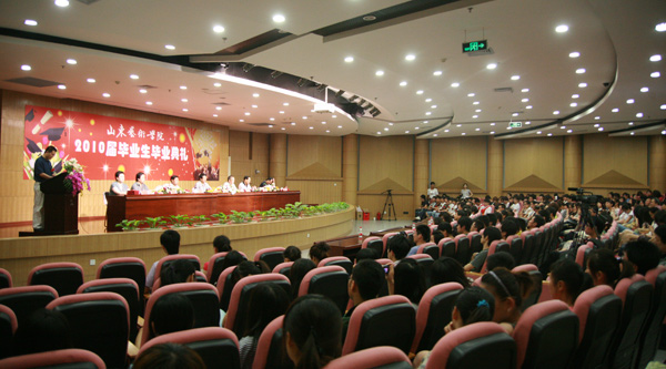 6月21日上午9时30分,我校2010届毕业典礼在长清校区图书馆报告厅隆重举行。校党委书记柳文敏,院长张志民,党委副书记、纪委书记刘致兴,副院长胡德定、刘大力、王力克、刘晓静以及各二级学院、各部门相关负责人和老师出席了毕业典礼。毕业典礼由副院长胡德定主持,院长张志民发表了讲话。