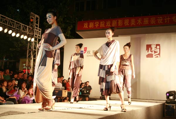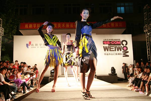 5月21日晚,我校文东校区广场前灯光辉映、掌声雷动,戏剧学院2006级影视美术服装设计专业毕业作品汇报演出在这里隆重举行。在动感的旋律中,模特们身着同学们设计、制作的150余套靓丽服饰,为学院师生和泉城百姓献上了一场饱含艺术与青春气息、彰显个性与时尚的服装设计盛宴。刘大力副院长到场观看了演出。