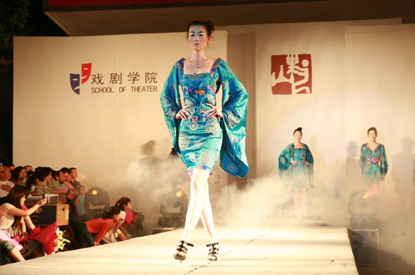 在第一个篇章中,设计者调动起了色彩、纹样、面料等服装设计元素,通过《迷境变奏》、《我的梦我主宰》、《碎碎恋》、《深谷幽兰》等作品,表达出了“我的青春我作主”这一主题下年轻人对青春的思考、觉醒、奋斗与追求;用服饰这一媒介为青春“代言”。《唯我·时尚》这一章的设计者们结合自己对高雅、魅感、流行、新潮等各种服饰品味的理解,将鲜明的个性特征融入自己的作品里,以对个性张扬的追求与时尚风潮的把握为主线,展现了率真、叛逆、狂野、放荡等多种“服饰性格”。悠闲、优雅、独立与自我的《布拉格之恋》,宽松、随意、展现风靡世界的“乞丐风潮”的《乞风尚》,以黑白为主、简约明快的《格调》、《Black Lady》,浪漫、纯情的《夏日地中海》、《蔚蓝记忆》等系列都体现了对个性不懈秉持和对时尚孜孜以求的设计理念。《唯我·畅想》里,设计者们的灵感触角在远古与现在、东方与西方的艺术宝库中不断搜寻,通过设计的服装向文化致敬。《水墨绽放》、《雕栏玉砌》、《秦汉华仪》等系列中对中国传统水墨技法、中国古代建筑木雕的清丽写意手法及秦汉时期服饰的博大气势的引入与借鉴,使现代服装设计与中国古代艺术精髓翩然交汇;《百老汇》、《马戏团之夜》等系列中对西方文艺元素的移植,让展出服饰具备了浓浓的海外艺术气息。