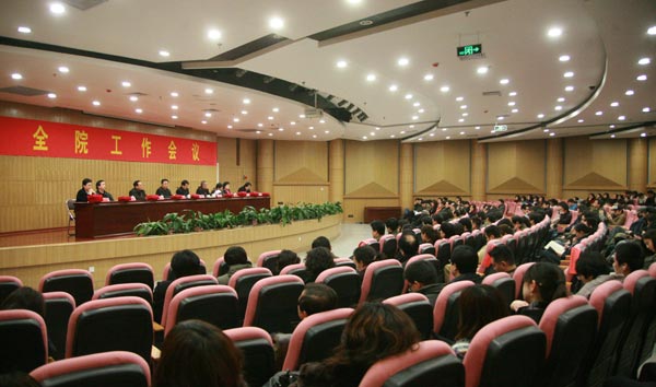 3月18日下午,全院工作会议在长清校区图书馆报告厅隆重召开。院党委书记柳文敏,院长张志民,党委副书记朱德强,党委副书记、纪委书记刘致兴,副院长胡德定、郭跃进、刘大力、王力克、刘晓静出席会议。院长张志民总结学院2009年工作。党委副书记、纪委书记刘致兴宣读表彰先进决定。党委书记柳文敏部署学院2010年工作。党委副书记朱德强主持会议。机关科级以上干部,各二级学院、公共课教学部处级干部、科级干部、教研室主任、党支部书记、教师代表400余人参加了会议。