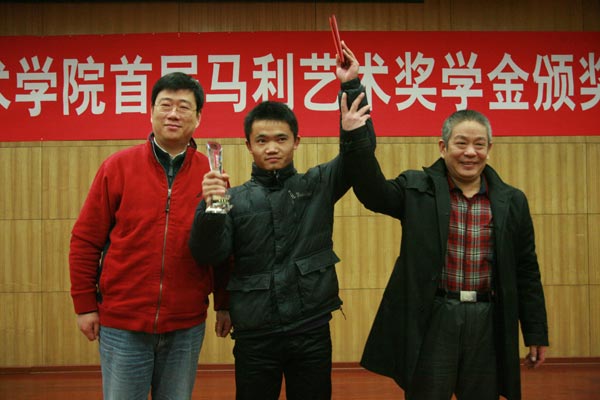 3月16日上午,我校美术学院首届马利奖学金颁奖仪式在长清校区图书馆报告厅举行。张志民院长和王力克副院长出席了颁奖仪式,并为获奖同学颁发证书和奖杯。马利公司副总经理徐文富先生一行三人、金艺画廊代表、美术学院学术委员会的老师们以及美术学院2007、2008级的同学们参加了颁奖仪式。