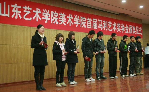 马利奖学金于去年秋季在山东艺术学院正式设立,除八大美院之外,这在全国综合类艺术院校中尚属首例。马利奖学金旨在奖励我校在绘画艺术创作方面有突出成绩的优秀学生,获奖作品主要从美术学院每年的秋季写生展中选出。这项社会奖学金的设立,不仅进一步丰富和完善了我校的奖学金制度,增加了对优秀学生的奖励力度,而且也充分表明了社会对艺术学院办学成绩的支持和肯定,给予了学校全体同学尤其是美院学子以强大的鼓舞。