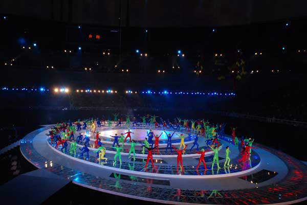 为了全运会的开闭幕式演出,舞蹈学院的师生们放弃了暑假、中秋和国庆的休息时间,牺牲了半个学期的上课时间,但他们无怨无悔。四年一次的运动盛会,每个学生或许只有一次参与的机会,能站在全运会的舞台上,面对亿万的观众,已是无限的光荣。