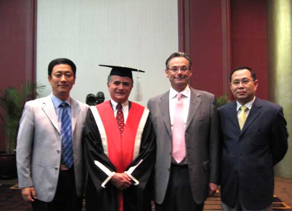 近日,我院外事处处长、国际艺术交流学院院长胡少力同志与我院和澳大利亚格里菲斯大学的共同代表王建平先生应邀参加了澳大利亚驻华大使馆在北京为格里菲斯大学和我国卫生部联合举办的合作项目——共同培养公共卫生专业硕士研究生学位颁发仪式。