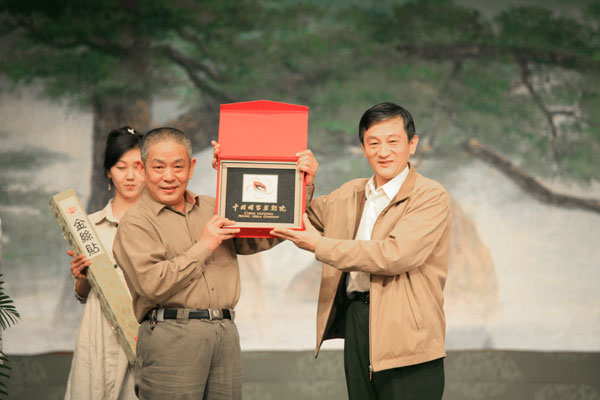 张志民院长在演出前致词,并与国家京剧院院长、国家一级编剧、全国政协常委吴江先生分别代表山东艺术学院和国家京剧院互赠了象征着友谊的礼品。