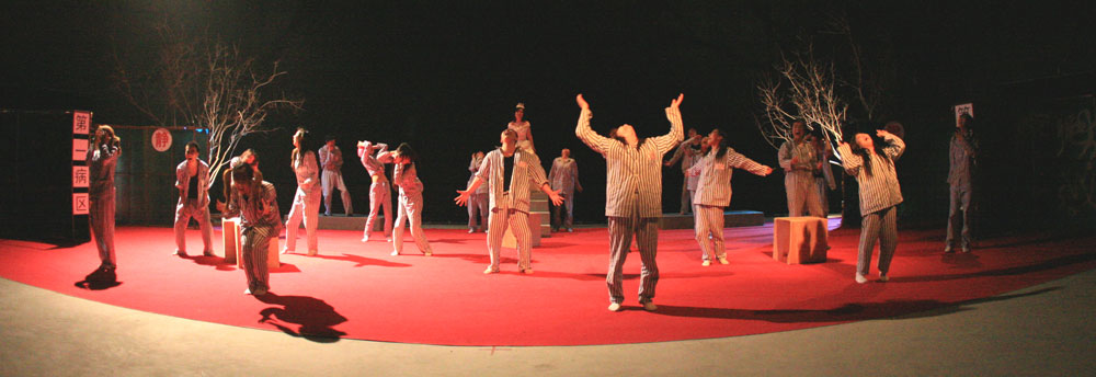 演出作品以新锐编剧喻荣军先生同名先锋剧作《天堂隔壁是疯人院》为母本,指导教师谭皓中、刘佳子与同学们对该剧进行了精心策划与编排,使作品既忠实于原作又增添了不少新意。经过近两个月的努力排演,大家为观众奉献上了这部异彩纷呈的小剧场作品。