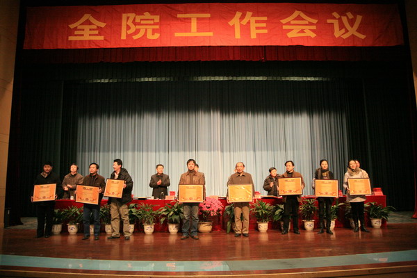随后,院党委副书记、纪委书记刘致兴宣读了《关于表彰2008年度先进单位和先进个人的决定》和《关于表彰2008年度“三育人”先进集体、先进个人的决定》。院领导为受到表彰的20个先进单位、142名先进个人和2个“三育人”先进集体、29名“三育人”先进个人颁奖。