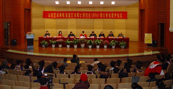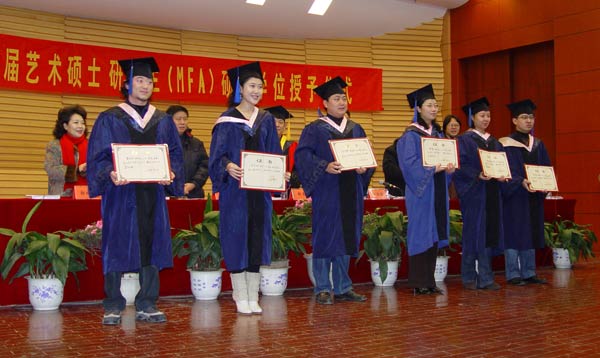 2008年12月31日上午,我院首届艺术硕士研究生(MFA)硕士学位授予仪式在文东校区音乐厅隆重举行。院领导张志民、朱德强、刘致兴、胡德定、郭跃进、刘大力、王力克、我院原副院长江奔东教授、各二级学院的负责人、研究生导师以及研究生任课教师、全体毕业艺术硕士及他们的亲友们共200余人参加了仪式。典礼由院党委副书记朱德强主持。