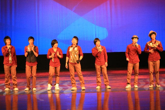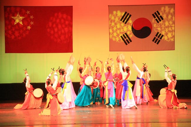 演出分上下两个时段进行。上半场,来自韩国檀国大学的金贤淑舞蹈团的师生们为观众们献上了原汁原味的民族舞蹈。绚烂多姿的《花冠舞》、悠雅别致的《扇子散调》、欢快明丽的《太平舞》、民族风格鲜明的《长鼓舞》让观众们饱览了韩国风情。上半场快要结束时,舞蹈团表演了节目《舞蹈把我们连在一起》,欢快的节奏中,中韩两国国旗从空中徐徐落下,演员们载歌载舞,表达了对两校友谊日久天长的深切祝福。