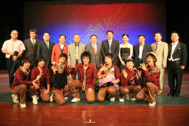 演出结束后,学院领导走上台与演员们亲切握手,并分别与两所大学的参演人员合影留念。