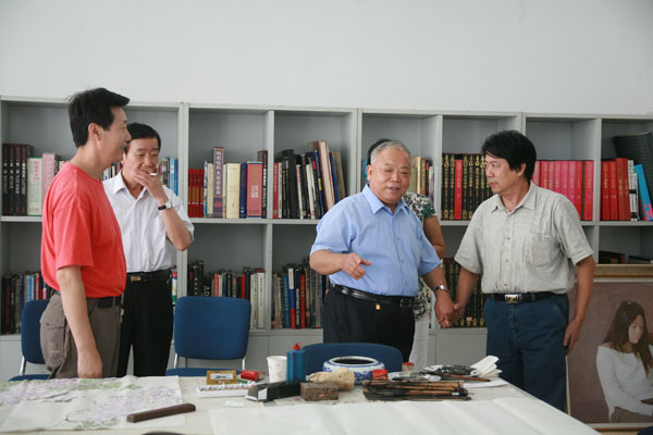 报告会结束后,王修智副主席兴致勃勃地参观了我院演播厅、汉画像石艺术馆、剪纸艺术馆和鲁锦艺术馆,并到美术学院观摩教师创作,与正在进行艺术创作的教师们进行了愉快交谈。
