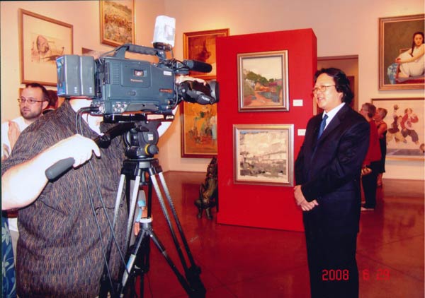 应美国印地安那波利斯艺术中心的邀请,由我院美术学院具体组织的、以“来自孔子故乡的艺术”为主题的绘画艺术作品展,在美国海瑞集团和山东公路建设集团的赞助支持下,经过为时一年半的精心筹备,于6月28日在该艺术中心隆重开幕。以我院副院长王力克为团长的艺术交流团赴美出席了开幕式,我院美术学院院长毛岱宗教授、沈光伟教授、谭智群副教授也应邀出席。在展览开幕期间,艺术交流团受到印地安那州政府、波利斯市艺术中心和当地著名人士诚挚热情的欢迎和款待,并参加了由对方举办的中国艺术节系列学术交流活动。