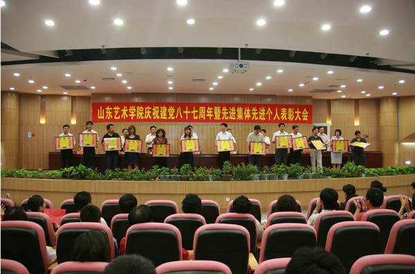 大会在雄壮的国歌声中开幕。党委副书记朱德强首先宣读了《中共山东省委、高校工委关于表彰2006—2007年度高校先进基层党组织、优秀共产党员和优秀党务工作者的决定》和学院党委《关于表彰2006—2007年度山东艺术学院先进基层党组织、优秀共产党员和优秀党务工作者的决定》。全院共有5个党总支被评为“先进党总支”, 13个党支部被评为“先进党支部”,8名同志被评为“优秀党务工作者”,83名同志被评为“优秀共产党员”。其中,机关党总支被授予“山东高校先进基层党组织”荣誉称号,范维平同志被授予“山东高校优秀共产党员”荣誉称号,兰绍彤同志被授予“山东高校优秀党务工作者”荣誉称号。学院领导向受到表彰的先进集体和先进个人现场颁发了奖状和荣誉证书。