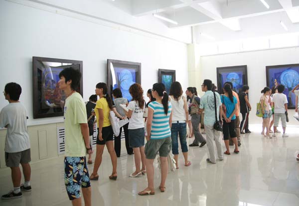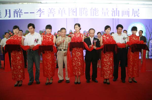 这次画展是李善单教授大陆巡回展的第五站,共展出了其挂月系列、诗词系列、红尘系列、当代美女系列等59幅作品。展出作品是其所开创的“图腾能量油画”的代表作。