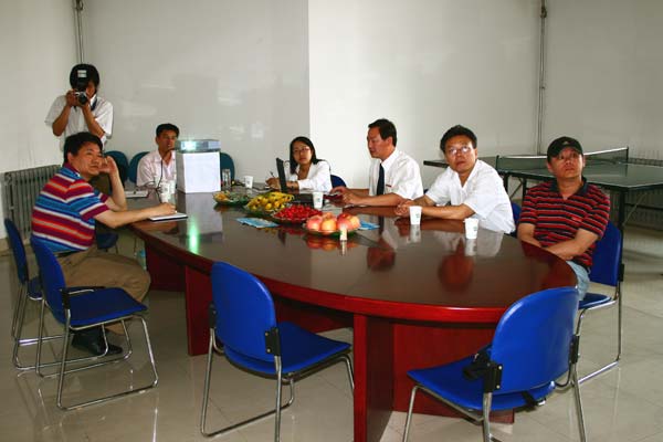 现代技术教育部负责人分别从部门概况、教学科研、校园网建设与应用、电化教学服务、设备管理与技术支持、规章制度建设等六个方面向靳学东教授进行了汇报。汇报过程中,靳学东教授还就网络教学资源的开发与利用、正方教务管理系统、校园卡一卡通管理系统进行了详细询问,对我院网络资源的特色栏目“网上画廊”、“网络教学”、“网上演播厅”等颇感兴趣。