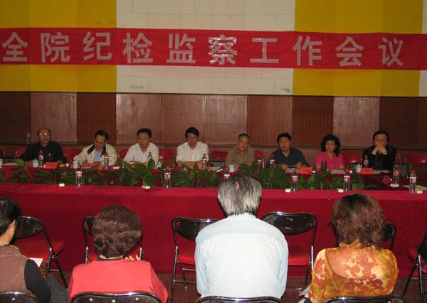 会上,院纪委监察处负责人首先传达了《杨传升在中共山东省纪委九届三次全体会议上的工作报告》。随后,党委副书记、纪委书记刘致兴做了《2007年纪检监察工作总结》。他指出,在过去的一年中,在院党委、院行政的领导下,纪委着重从加大党风廉政建设的宣传教育力度,努力提高干部职工的廉政意识;认真执行党风廉政建设责任制,狠抓各项责任的落实等方面开展了行之有效的工作,取得了一定的成绩。对于2008年的纪检监察工作,刘致兴同志从认真贯彻落实中央纪委十七届二次全会、省纪委九届三次全会精神和院党委、院行政决议;做好专项工作的监督监察工作;大力倡导校园廉政文化建设;继续推进“作风、教风、学风”建设;加强纪检监察部门的自身建设,努力提高执纪水平等方面进行了详细的部署和要求。