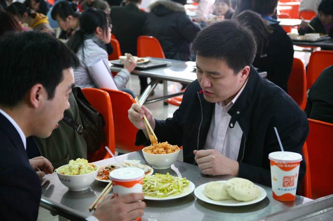 预评估专家组秘书高凯考察学生食堂与学生共进午餐