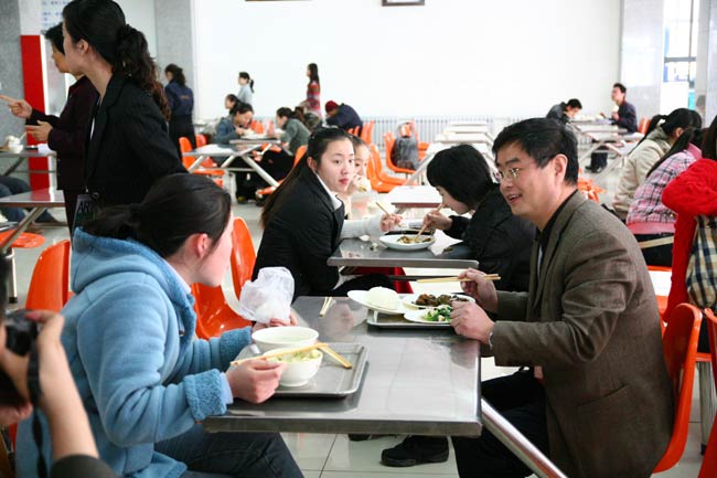 预评估专家组专家蒋志华考察学生食堂与学生共进午餐