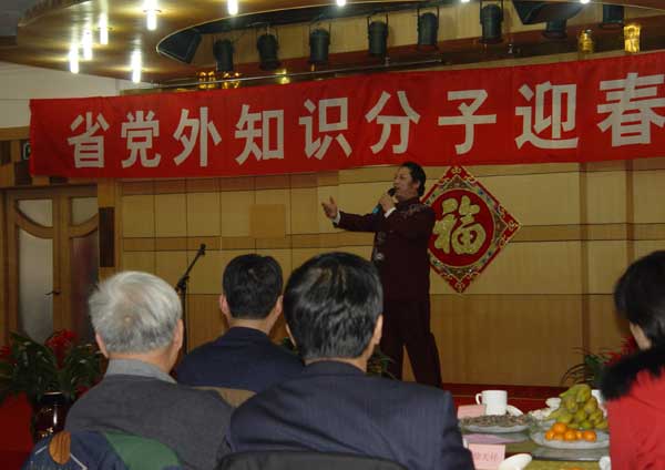 1月31日下午,省党外知识分子迎春茶话会在山东省社会主义行政学院举行,省政协副主席、省委统战部部长齐乃贵,省委统战部常务副部长张心骥,省委统战部副部长、省社科院党组书记徐凡渠和新的社会阶层人士、留学人员、党外知识分子联络员、部分驻济高校的统战部长和济南市有关企业负责人共50余人参加了茶话会,我院党委统战部组织师生参加文艺演出。茶话会由省委统战部主办。