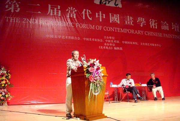 29日,张志民院长参加了在北京大学百年讲堂举行的“第二届当代中国画学术论坛·北京大学论坛”专题讲演活动。18位资深艺术家代表分别围绕“传承、兼融、新创”的主题,从不同角度,相继阐述了各自的学术观点。张志民院长结合自己的创作经历,就传承、兼融、新创的关系、中国画的用笔等问题阐明了自己的艺术心得,着重阐述了本次论坛的主题“传承、兼融、新创”的含义。张志民院长还针对台下听众的提问作了精彩回答,尤其对当前中国艺术教育领域存在的时弊进行了深入剖析、对振兴“北方画派”问题发表了自己的独到的见解。同时鼓励当代大学生要好好学习,了解传统文化,继承传统文化的精华,开拓创新,让中国画之精神发扬光大。台下听众对张志民院长的精彩演讲兴致盎然,反响热烈,掌声不断,形成了良好的互动局面。