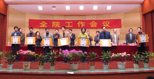 总结完毕,党委副书记、纪委书记刘致兴在会上宣读了《关于表彰2006年度先进单位和先进个人的决定》,与会院领导为获奖的13个先进单位和涌现出的158位先进个人颁奖。