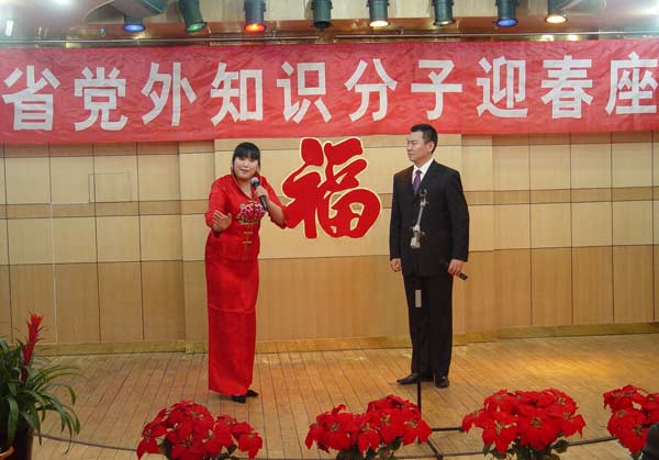 2月2日上午,山东省党外知识分子迎春座谈会在社会主义学院举行。我院承办了座谈会后的全部文艺表演,共表演独唱、唱段、乐器演奏等8个节目。图为节目京剧选段《军民鱼水情》。