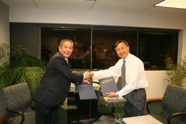 张志民院长与圣·莫尼克大学校长签署友好备忘录后合影。