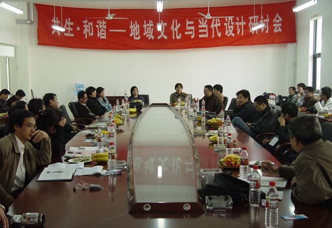 观看展览后,各与会学校设计专业类方面的专家、学者、教师及我院设计学院的部分研究生共同就当代设计与设计教育中的若干问题,在办公楼二楼会议室举行了“共生·和谐——地域文化与当代设计研讨会”。研讨会上,代表们主要围绕当代设计与设计教育中共生观念的形成与发展、地域文化在当代设计中的彰显与表达、如何看待不同文化背景下的设计教育体制和形态、如何确立依托地域文化背景的设计文化形态和设计教育措施等主要议题进行了充分热烈的讨论。代表们分别结合各自学校的特点,针对以上议题畅所欲言,展开交流。整场讨论气氛友好热烈,富有成果。