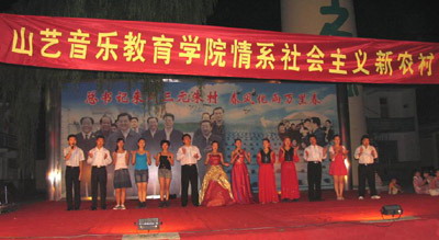 在四天的时间里,大学生社会实践团听取了三元朱村党支部书记王乐义做的专题报告并与他亲切交谈,对该村无公害蔬菜生产基地和高标准大棚进行参观。20日晚,同学们为村民们奉献了一场精彩的文艺演出,演出内容紧密结合“服务社会主义新农村、建设社会主义新农村、情系社会主义新农村”这一活动主题,节目中同学们用歌声赞美生活在新时代里的农民们过上的《好日子》,并祝福他们的日子《越来越好》,唱出了他们的致富带头人——王乐义以知党情报党恩的无私奉献意识、用活着就要创新的奋斗精神对《咱老百姓》的《报答》。村民们说,在自己村里看这么一台高水平的专业演出还是第一次,节目唱出了我们老百姓的心声。
