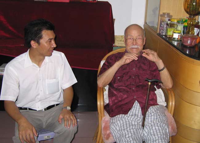 首位于希宁奖学金获得者侯云峰受到于老亲切接见,图为两人忘年畅谈。