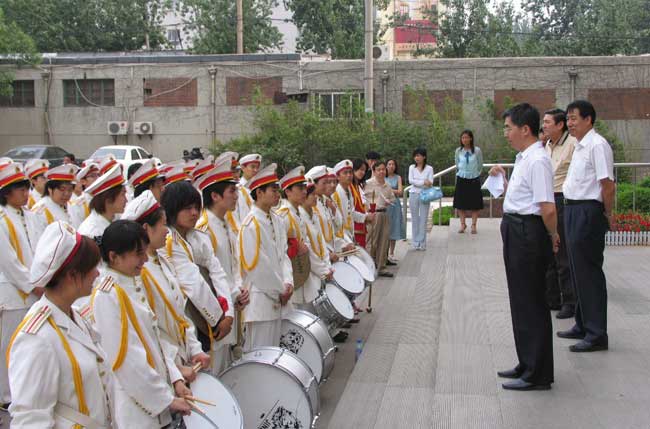 组委会领导在听取了学院领导关于文博会准备情况的简单汇报后,首先视察了文博会开幕式军乐团演奏情况。