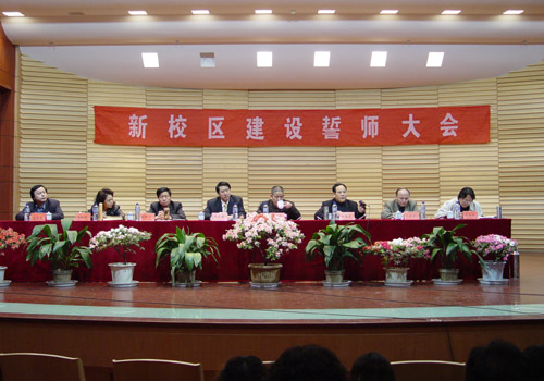 院党委书记柳文敏同志在会上作重要发言,他说新校区的建设关系到学院今后的发展和兴衰,时不我待,刻不容缓,并从新校区建设的重要意义,新校区建设的组织管理,建设队伍的思想、组织、作风建设;廉政建设等几个方面,做了重要部署。